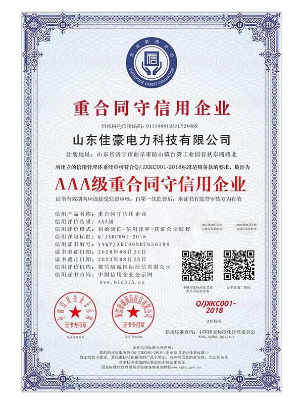 > AAA級重合同守信用企業_中文版